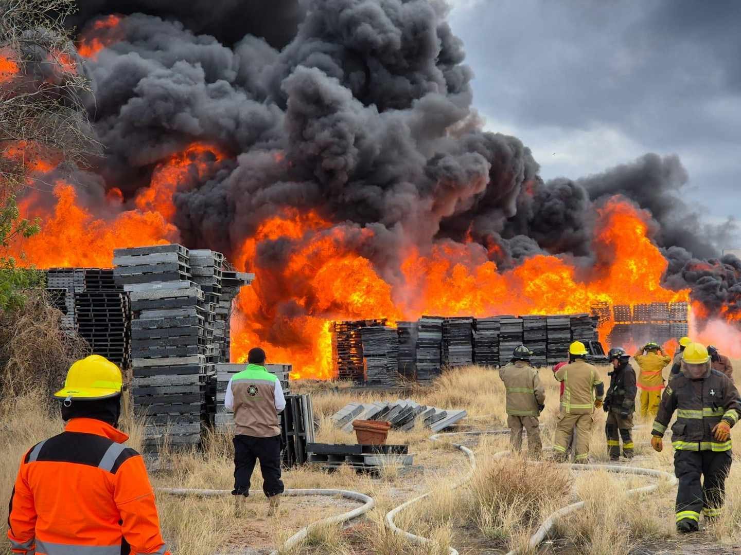 La Coordinación Estatal de Protección Civil (CEPC), en conjunto con bomberos metropolitanos, Protección Civil de Soledad de Graciano Sánchez y de la capital, realiza labores para extinguir el incendio registrado en una tarimera ubicada en avenida Valentín Amador y carretera Matehuala.